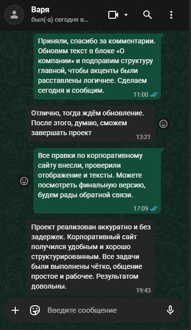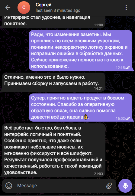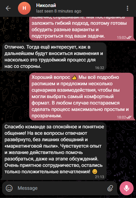 Регулярно показываем прогресс, объясняем свои решения и всегда на связи